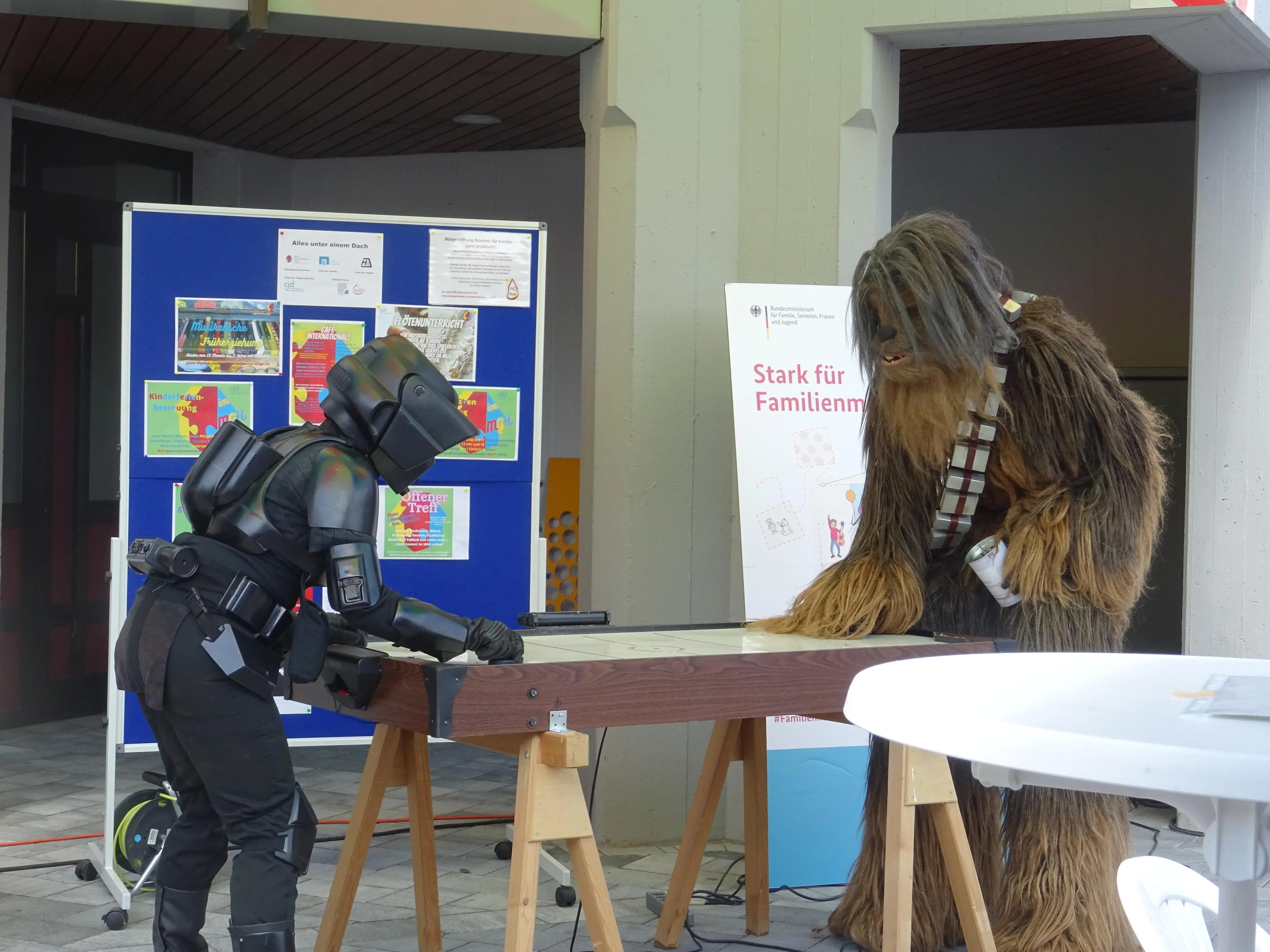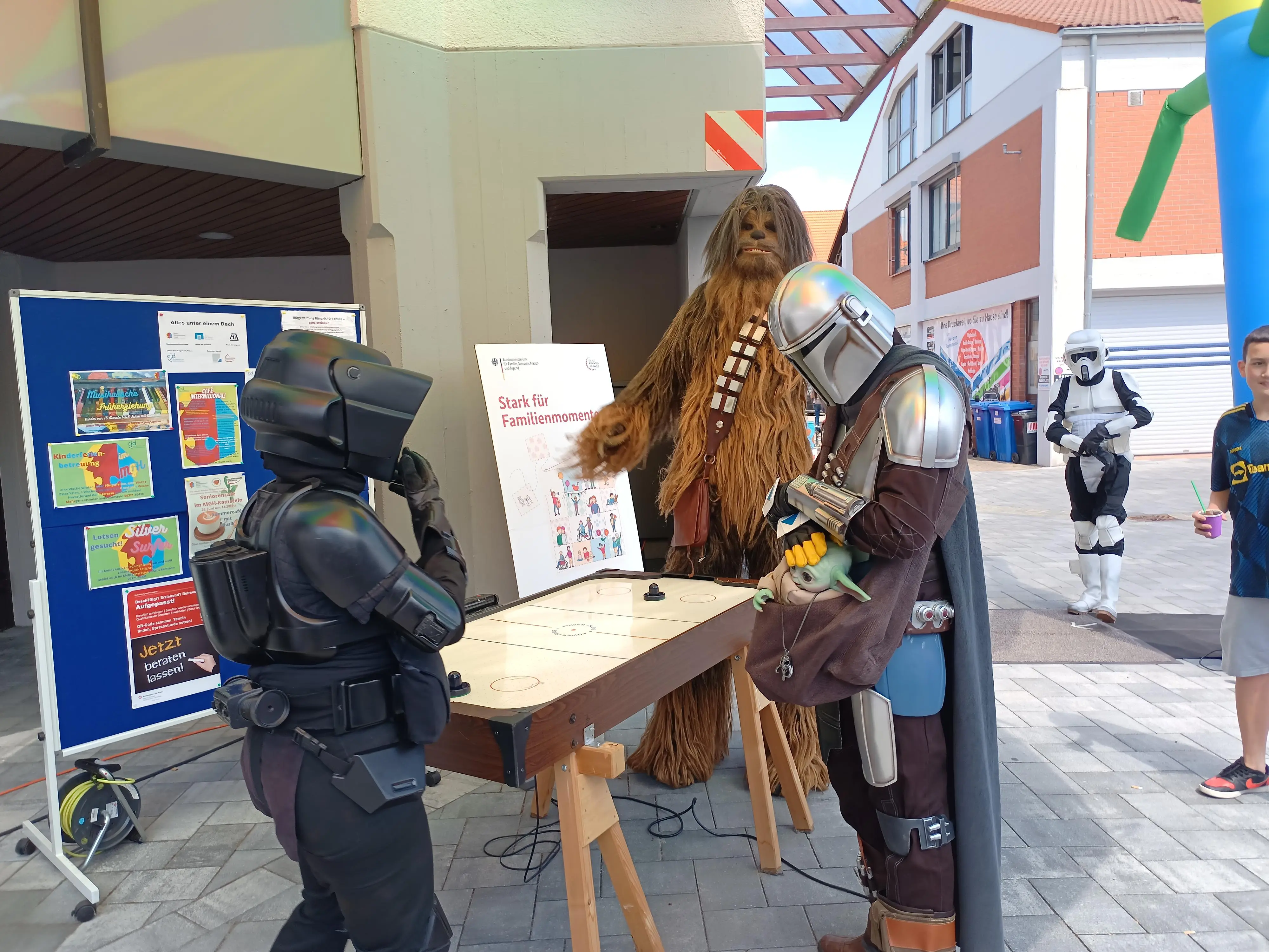 Großer Infostand, großes Engagement unserer Bündnismitglieder: Im Zentrum stand unser Bündnis als großes Ganzes; außerdem konnten sich unsere Bündnispartner*innen mit einem eigenen Stand präsentieren. Interessierte Besucher*innen hatten die Möglichkeit, sich über die Arbeit des Lokalen Bündnisses zu informieren und sich an einer Wunschkarten-Aktion zu beteiligen. Jeder Wunsch zur Verbesserung der Familienfreundlichkeit im Unternehmen wurde mit einem kleinen Präsent belohnt. Neben tollen Giveaways für Familien und Infomaterialien lockte unser Väternetzwerk mit einem Fotowettbewerb (Gewinn: Bollerwagen).